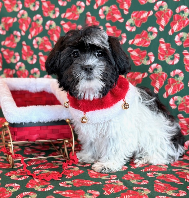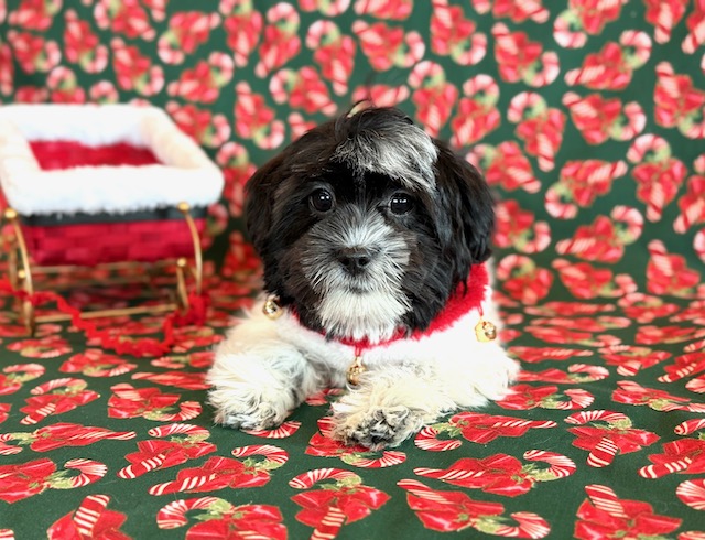Baylor is a precious little MalShi! His parents are Melody and Tiny, our registered Shih Tzu and Maltese. He’s just a tiny little guy with a super sweet character! I expect him to weigh around 7 lbs when full grown. He has a beautiful non-shedding coat! Baylor is ready for a family now.