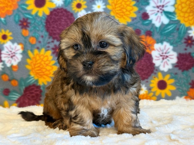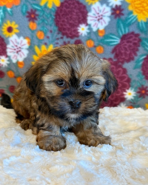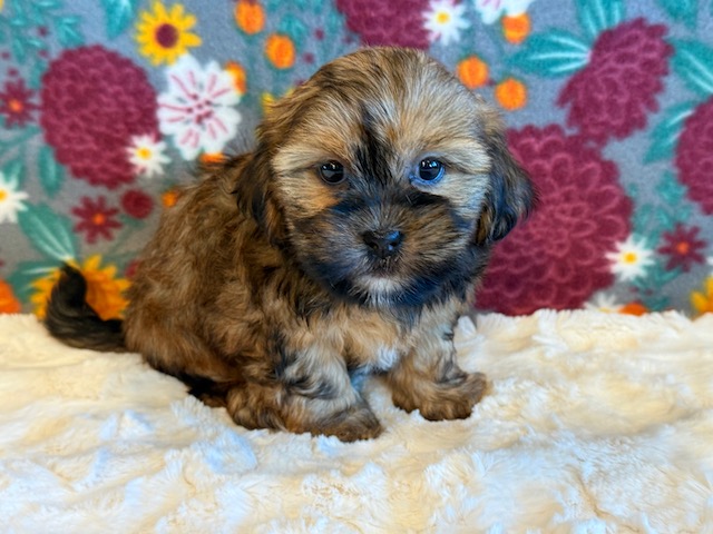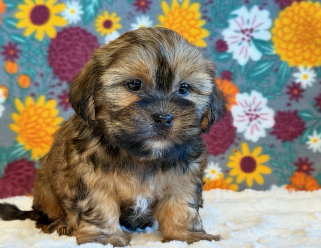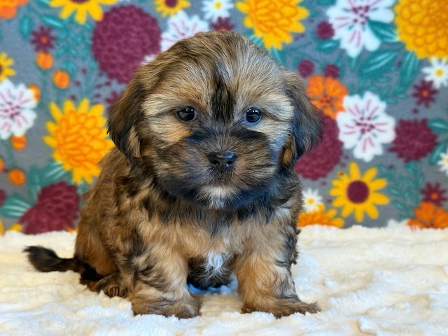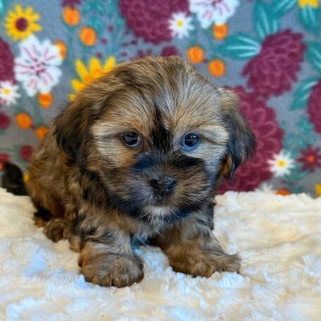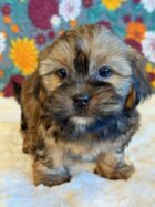 Chip is reserved for Monica! Chip is a sweet little Shorkie! His parents are Missy and Bingo, our registered Shih Tzu and Yorkie. He weighs 3 lbs on 10/13, I expect him to weigh around 10 lbs when full grown. He has a beautiful non-shedding coat! Chip will be ready for a family around October 25.