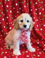 Denali is a handsome little Cockapoo! His parents are Cassie(18 lbs) and Homer(9 lbs), our registered Cocker Spaniel and Toy Poodle. I expect him to weigh around 14-15 lbs when full grown. He has a beautiful non-shedding buff coat! Denali will be ready for a family around December 4, he can be reserved now.