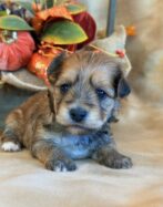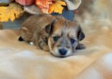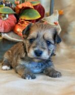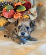 Elmo is a precious little Morkie! His parents are Tilly(5 lbs) and Bo(7 lbs), our registered Maltese and Yorkie. I expect him to weigh around 6-7 lbs when full grown. He has a beautiful non-shedding coat! Elmo will be ready for a family around November 20, he can be reserved now.