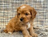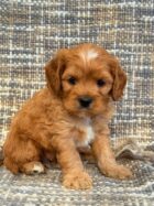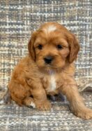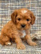 Elvis is an adorable little Cockapoo! His parents are Catalina(18 lbs) and Herbie(14 lbs), our registered Cocker Spaniel and Miniature Poodle. I expect him to weigh around 15-17 lbs when full grown. He has a beautiful non-shedding red coat! Elvis will be ready for a family around December 4, he can be reserved now.