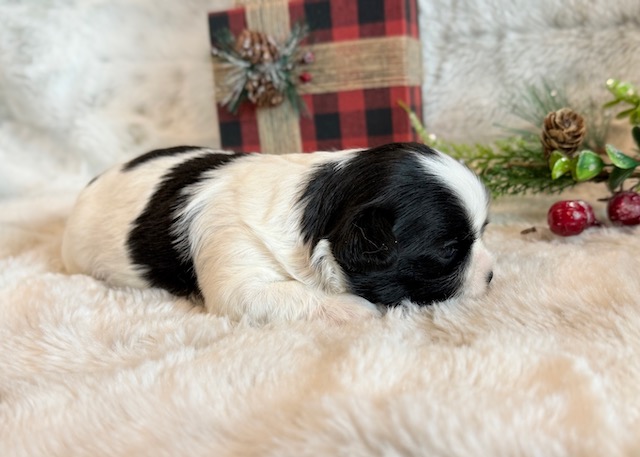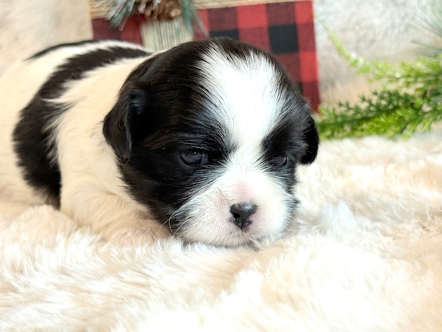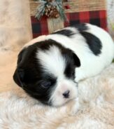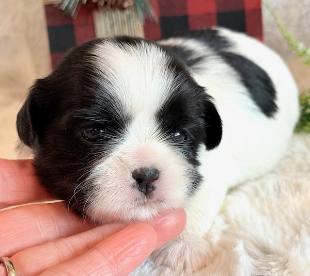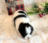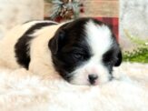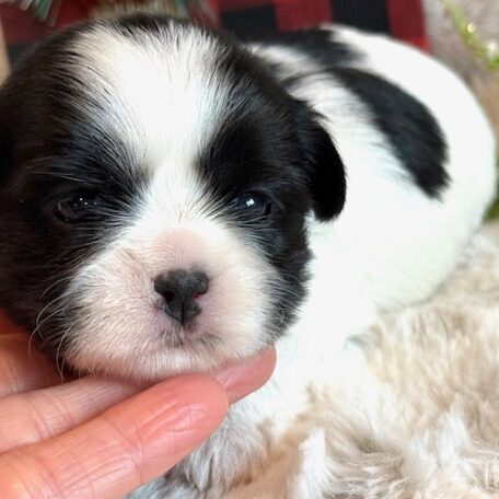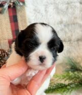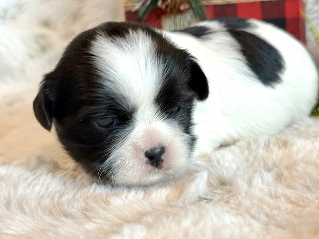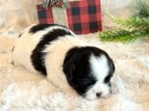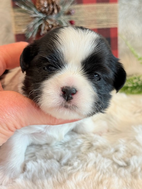Fergie is a sweet little Malshi! Her parents are Mia and Tinker, our registered ShihTzu and Maltese. I expect Fergie to weigh around 8-10 lbs when full grown. She has a beautiful non-shedding coat. She will be ready for a family around Jan. 9, she can be reserved now.