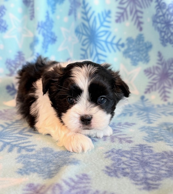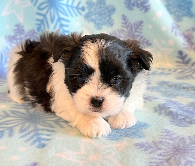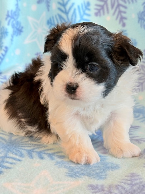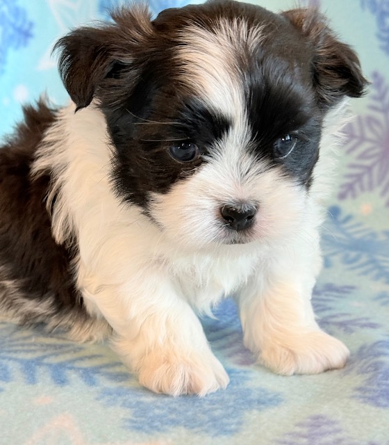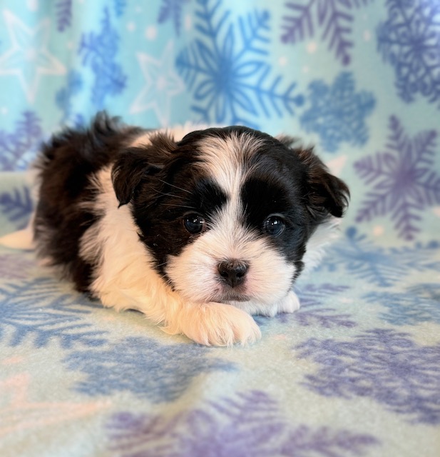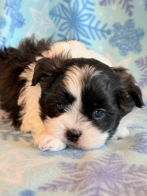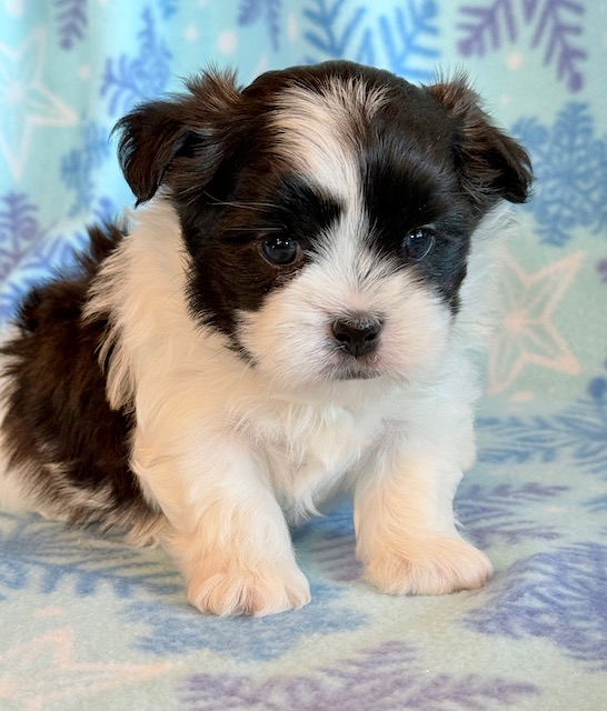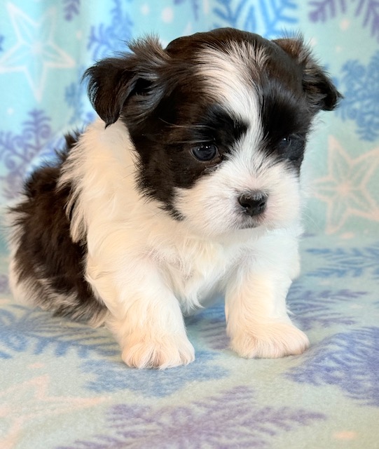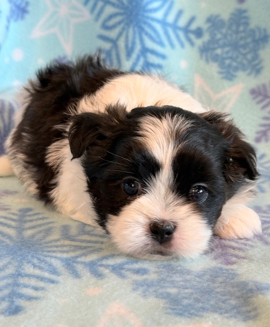 Jade an awesome little Malshi! His parents are Moxie and Tinker, our registered Shih Tzu and Maltese. I expect him to weigh around 9-10 lbs when full grown. He has a beautiful non-shedding coat. Jade will be ready to go around Jan. 28, he can be reserved now.