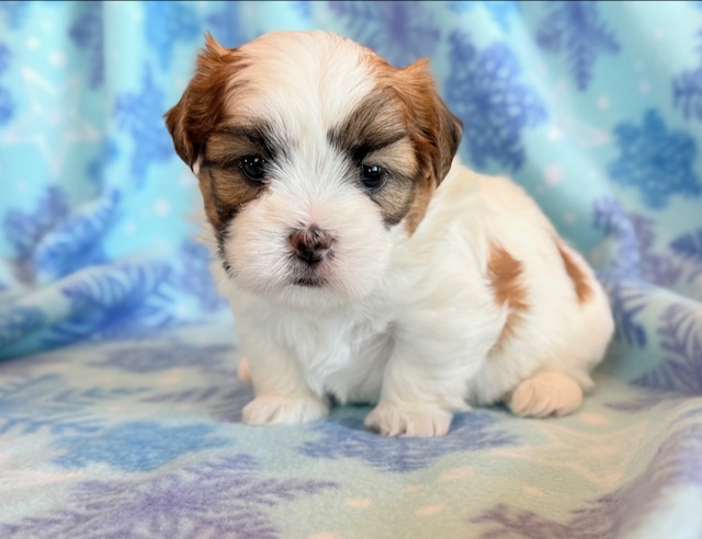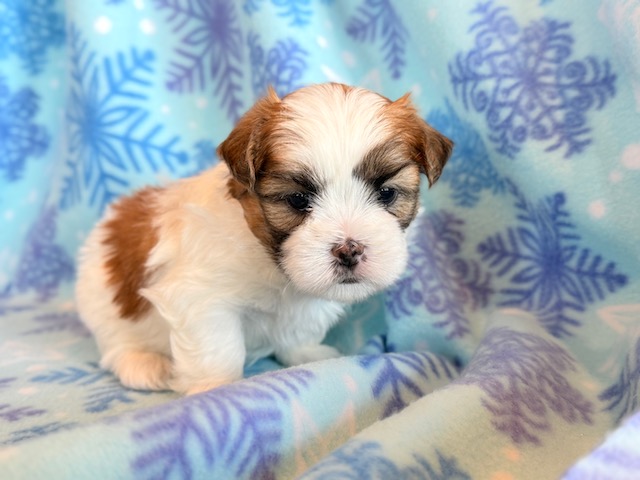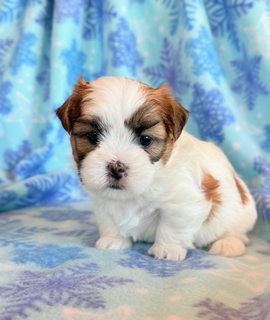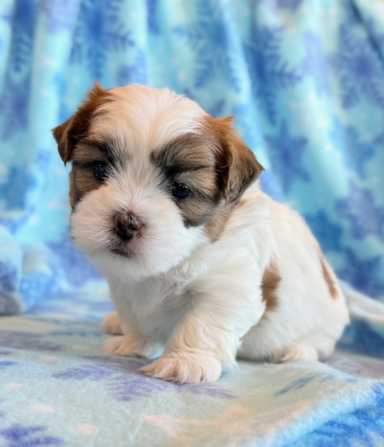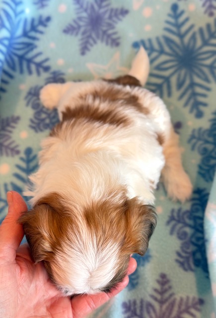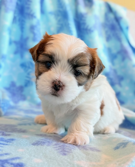 Jax a beautiful little Malshi! His parents are Moxie and Tinker, our registered Shih Tzu and Maltese. I expect him to weigh around 9-10 lbs when full grown. He has a beautiful non-shedding coat. Jax will be ready to go around Jan. 28, he can be reserved now.