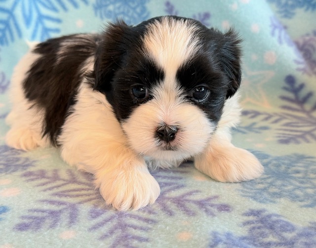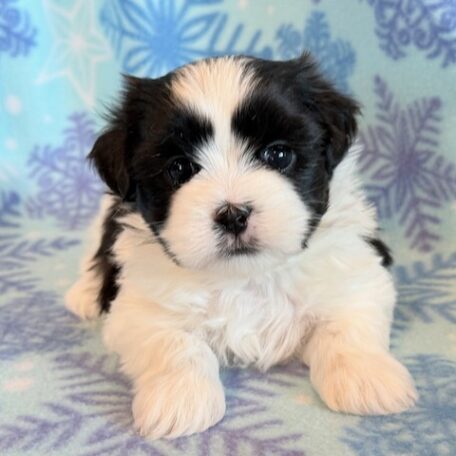 Jazzy is reserved for Lisa! Jazzy is a sweet little Malshi! I expect her to weigh around 8-9 lbs when full grown. She has a beautiful non-shedding coat. Jazzy will be ready to go around Jan. 28.