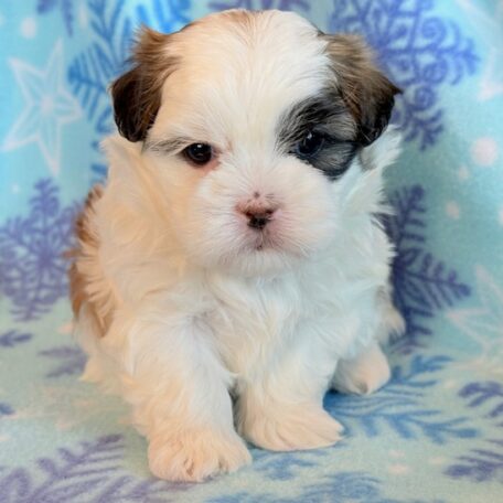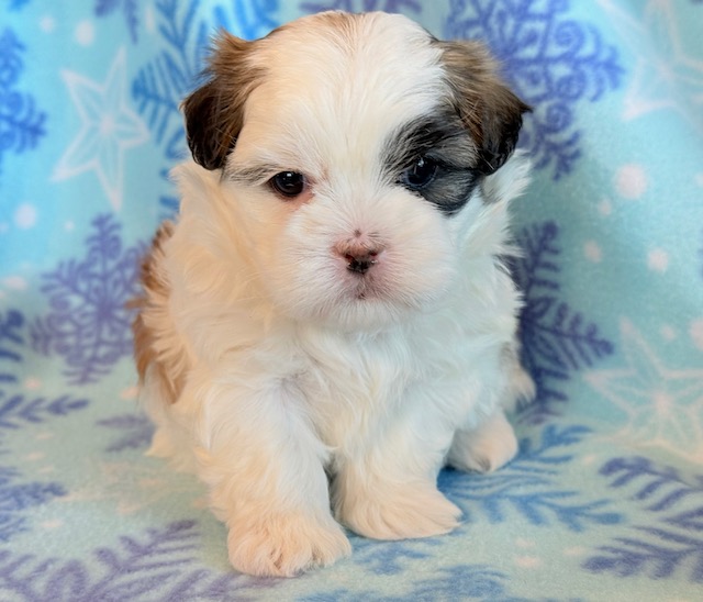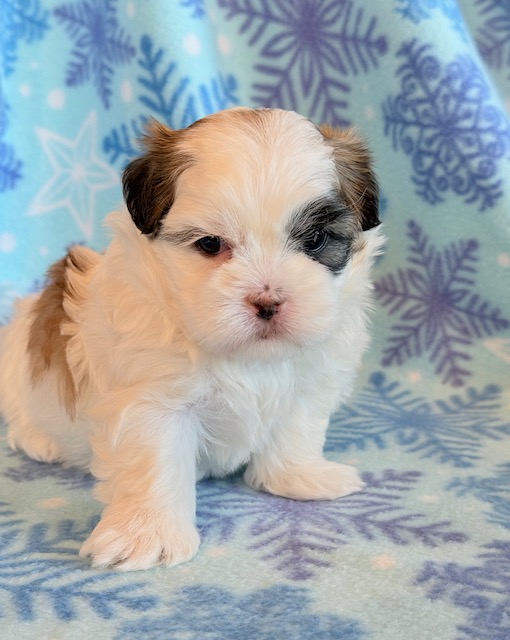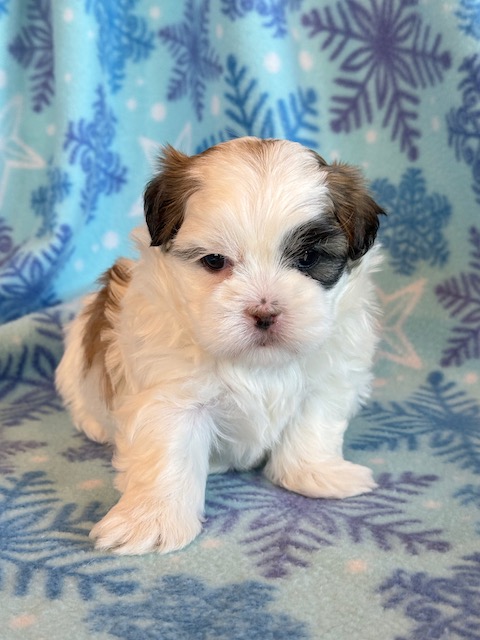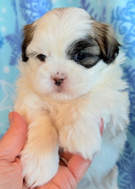 Josie a precious little Malshi! Her parents are Moxie and Tinker, our registered Shih Tzu and Maltese. I expect her to weigh around 8-9 lbs when full grown. She has a beautiful non-shedding coat. Josie will be ready to go around Jan. 28, she can be reserved now.