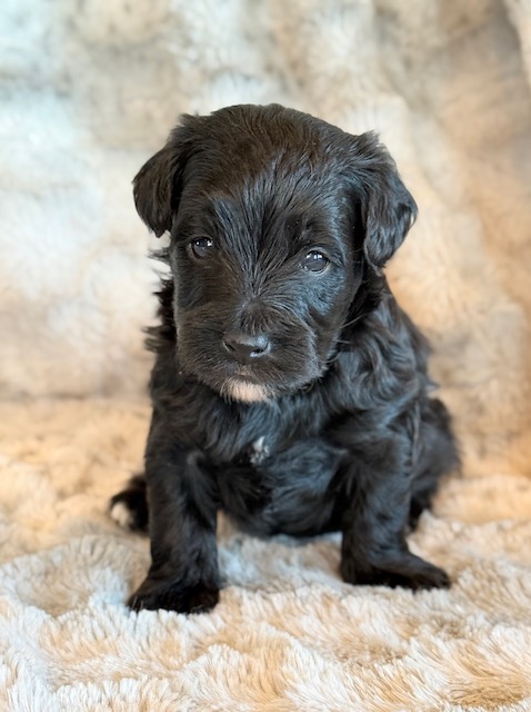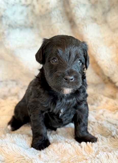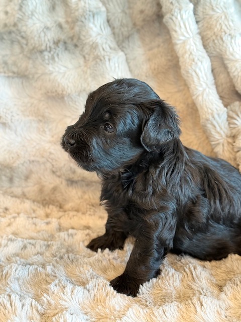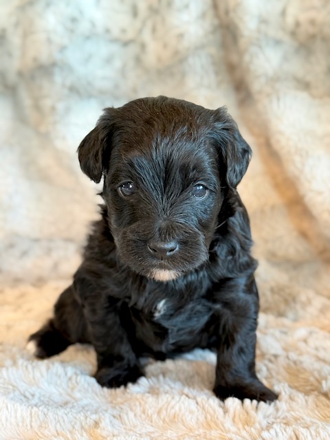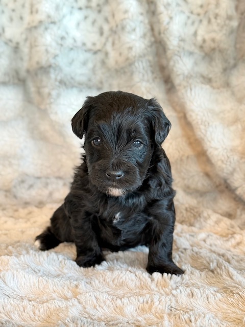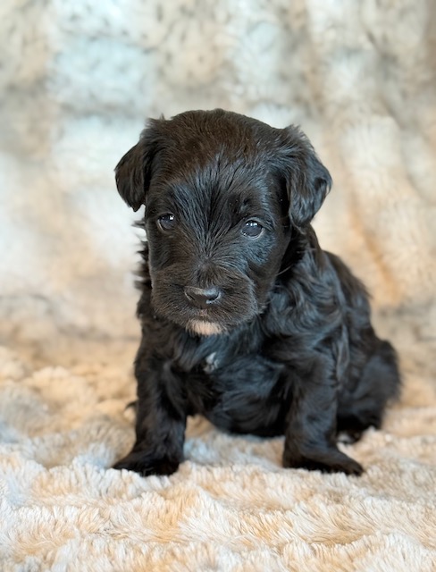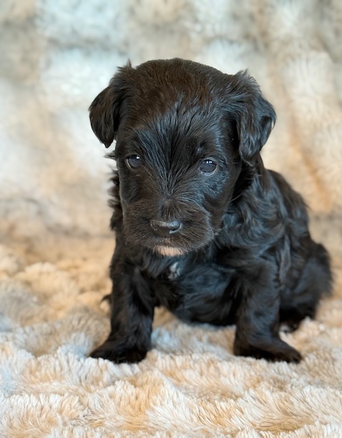 Kirby is a precious little YorkiePoo! His parents are Hailey and Bo our registered Poodle and Yorkie. I expect Kirby to weigh around 8 lbs when full grown, he has a beautiful non-shedding coat. He will be ready to go around Feb. 3, he can be reserved now.