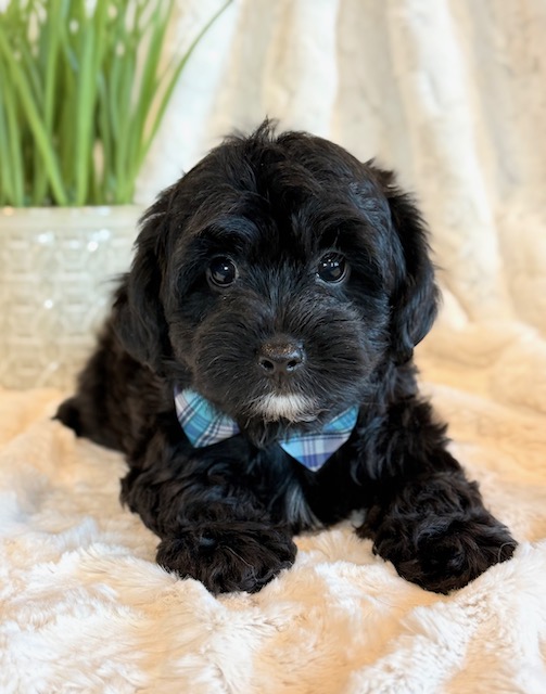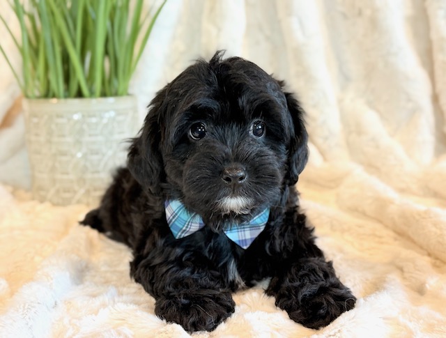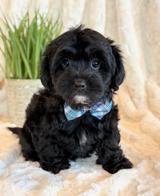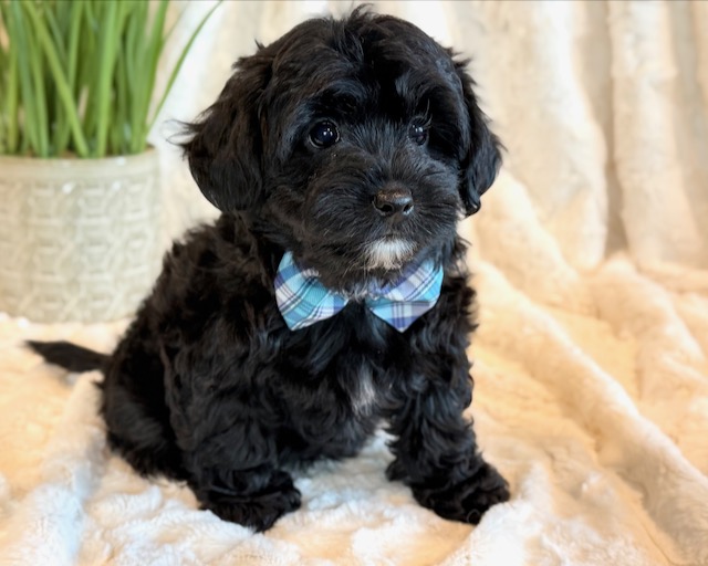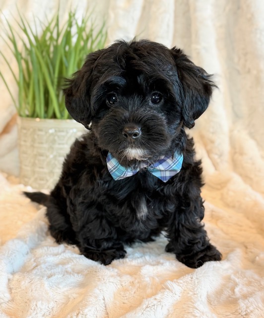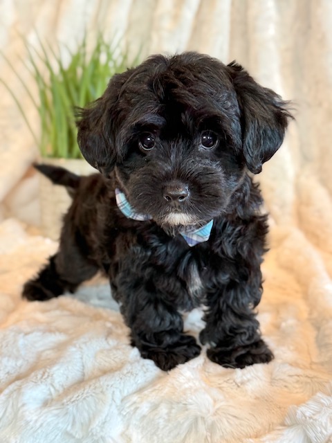 Kirby is a precious little YorkiePoo! His parents are Hailey and Bo our registered Poodle and Yorkie. I expect Kirby to weigh around 8 lbs when full grown, he has a beautiful non-shedding coat. He is ready to go now.