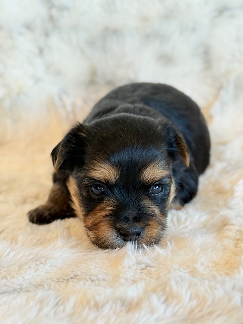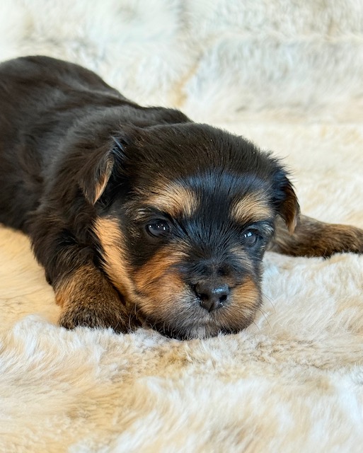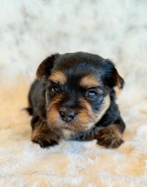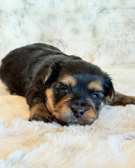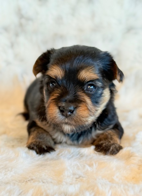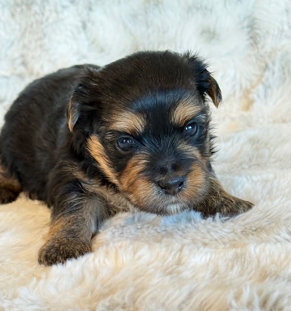 Lincoln is an awesome little Morkie! His parents are Toshi and Bingo, our registered Maltese and Yorkie. I expect him to weigh around 8-9 lbs when full grown, he has a gorgeous non-shedding coat! Lincoln will be ready to go around Feb. 7, he can be reserved now.