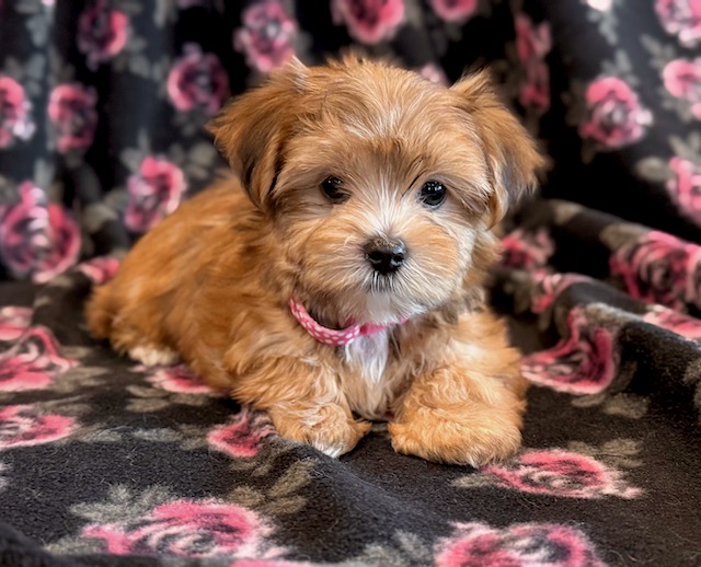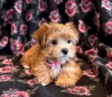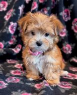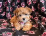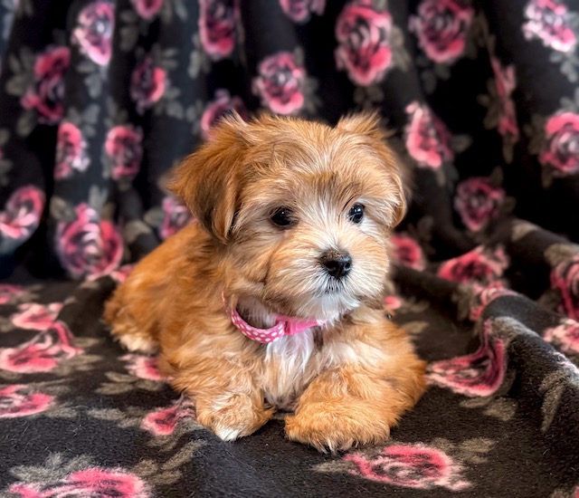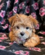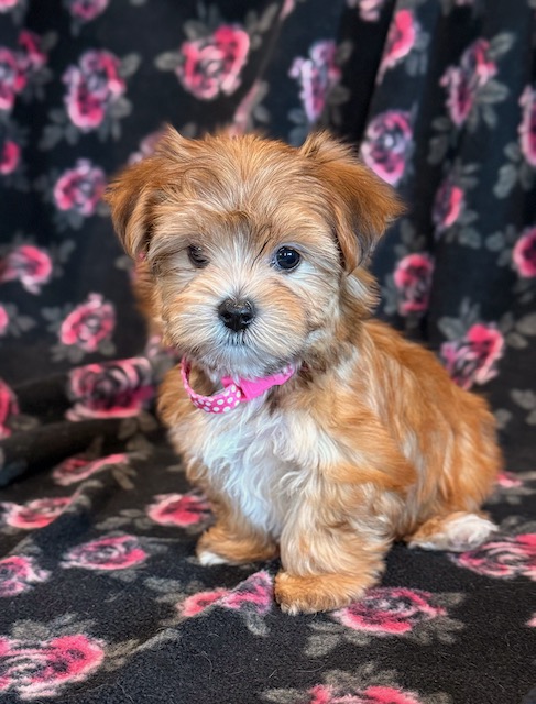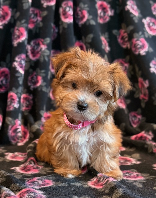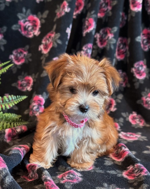 Lucy is reserved for Terry! Lucy is a precious little Morkie! Her parents are Toshi and Bingo, our registered Maltese and Yorkie. I expect her to weigh around 8 lbs when full grown, she has a gorgeous non-shedding coat!