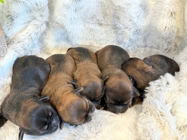 We can also meet you at one of our nearby airports and you may fly home with your puppy in a soft-sided carrier at your feet. Please contact me for more info about airline travel.