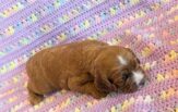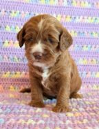 Mazy is an awesome little red Cockapoo! Her parents are Caroline and Jetta, our registered Cocker Spaniel and Miniature Poodle. I expect her to weigh around 18-20 lbs when full grown. Mazy will be ready to go around Feb. 3, she can be reserved now.