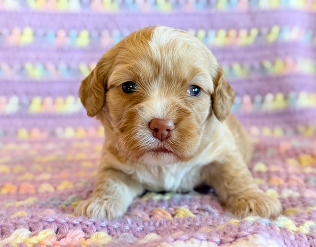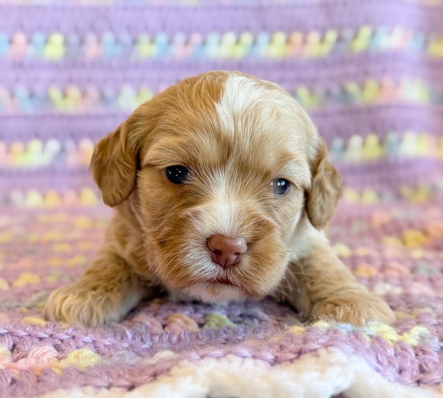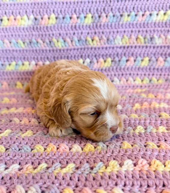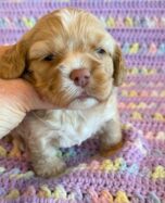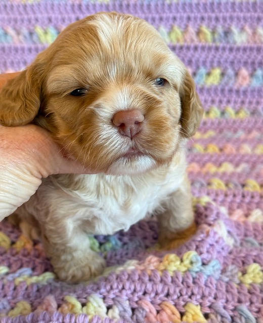 Millie is reserved for Richard! Millie is a sweet little Cockapoo! Her parents are Caroline and Jetta, our registered Cocker Spaniel and Miniature Poodle. I expect her to weigh around 15-16 lbs when full grown. Millie will be ready to go around Feb. 3.