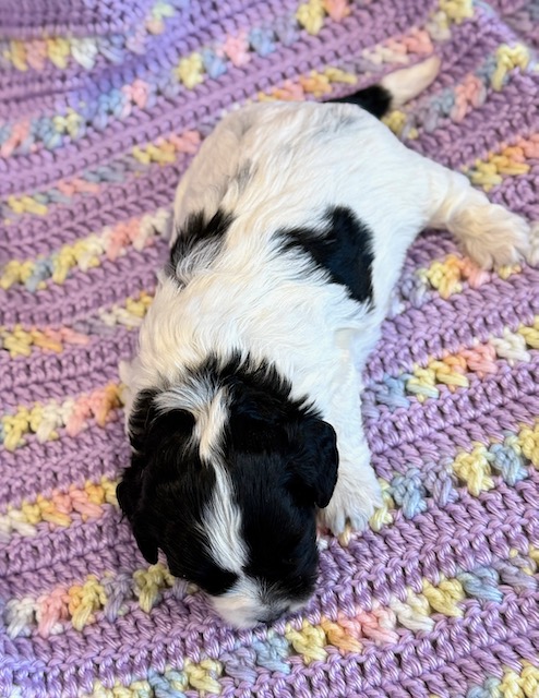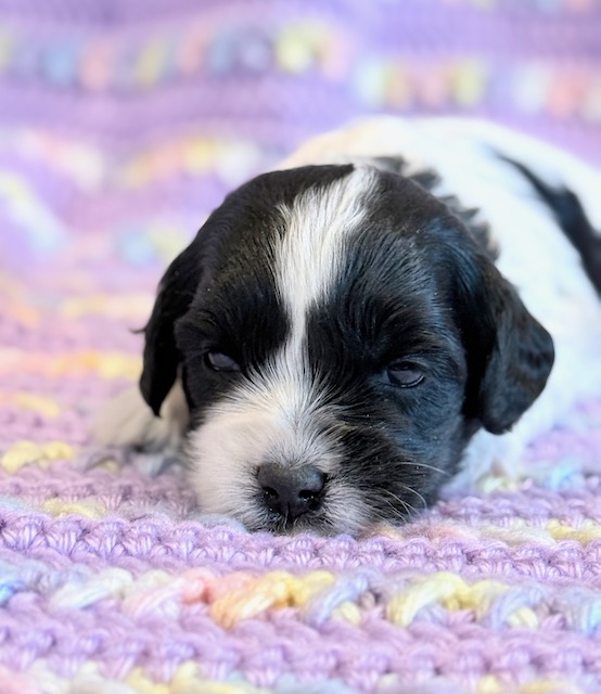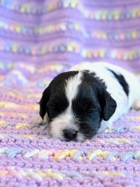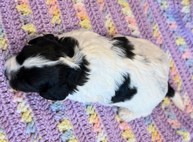 Paisley is an adorable little Cockapoo! Her parents are Goldie and Jace, our Cockapoo and Toy Poodle. I expect her to weigh around 11-13 lbs when full grown. Paisley will be ready to go around Feb. 25, she can be reserved now.