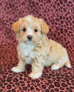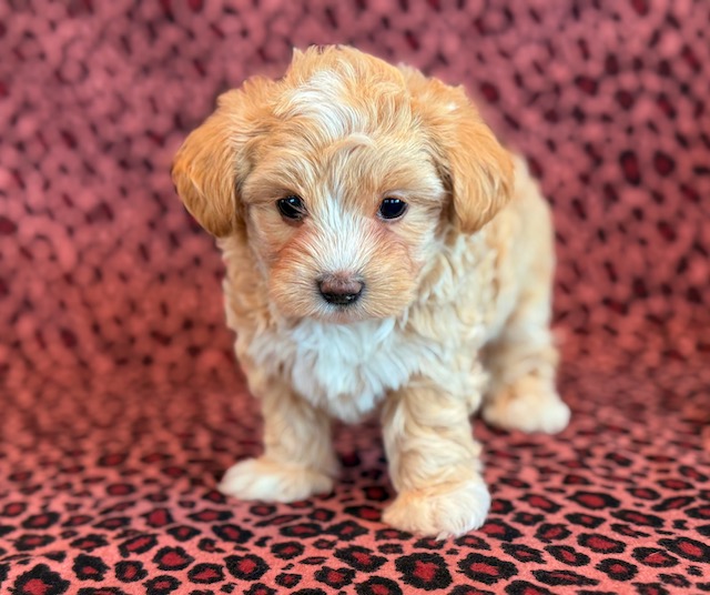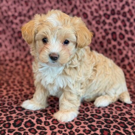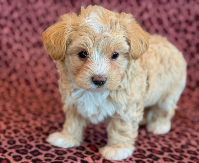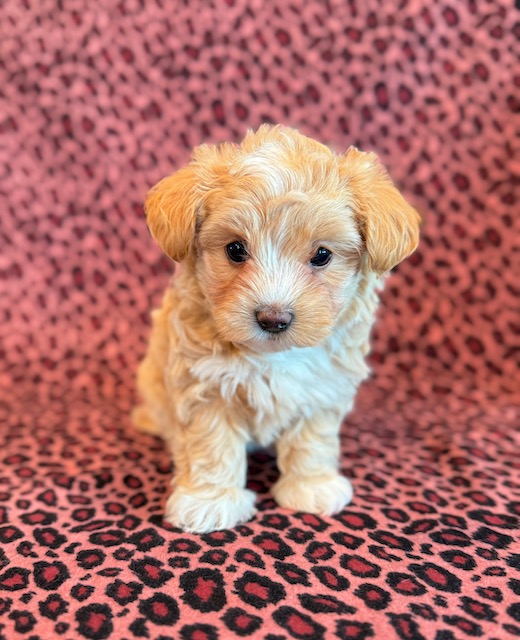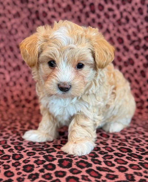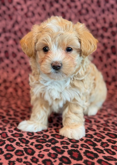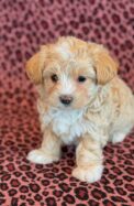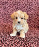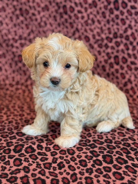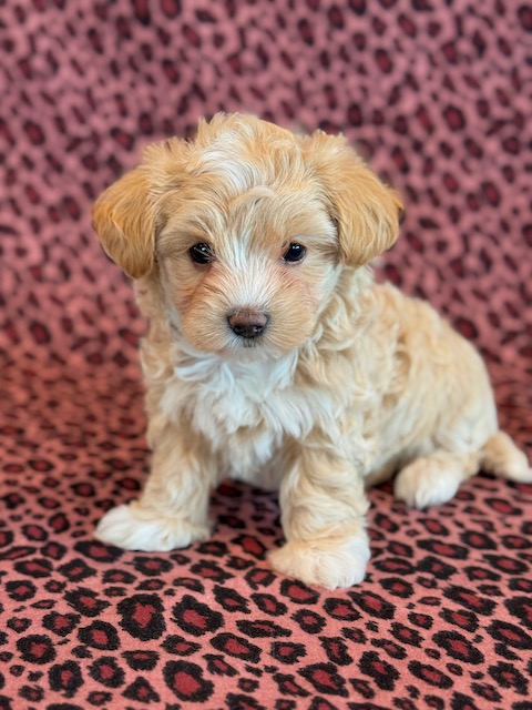 Taffy is reserved for Jill! Taffy is an adorable little MaltiPoo! Her parents are Willow and Jade, our registered Maltese and Toy Poodle. I expect her to weigh around 6 lbs when full grown, she has a beautiful tan/cream non-shedding coat! She will be ready for a family around April 30.